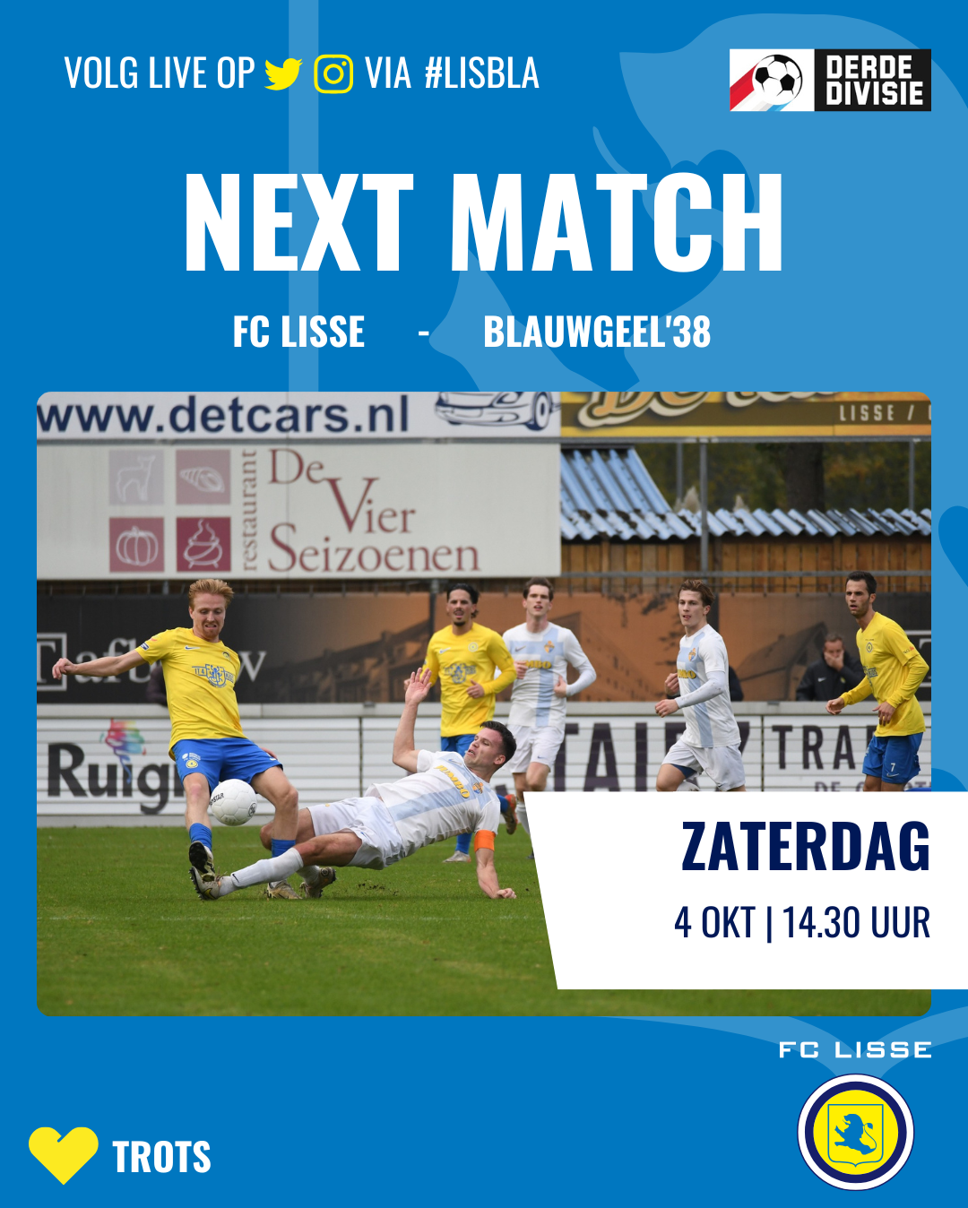 Kloetinge en Rijnvogels zijn voorlopig weggelopen van de concurrenten. De nummers een en twee van de derde divisie B treffen elkaar zaterdag 18 oktober 2025 in Katwijk. Kloetinge won zeven van haar negen wedstrijden. Steeds met een doelpunt verschil. De Zeeuwen verloren alleen bij UDI’19. FC Lisse kan dan ook haar borst nat maken op zondag 19 oktober 2025. Voor FC Lisse een mooi moment de handschoen weer op te pakken als het gaat om overwinningen. Vertrouwen en vorm zijn broze begrippen. Er is vaak maar een dun lijntje tussen winnen en verliezen. FC Lisse gaat dan ook uit van eigen kracht in jacht op de drie punten. De aftrap in Uden is om twee uur.