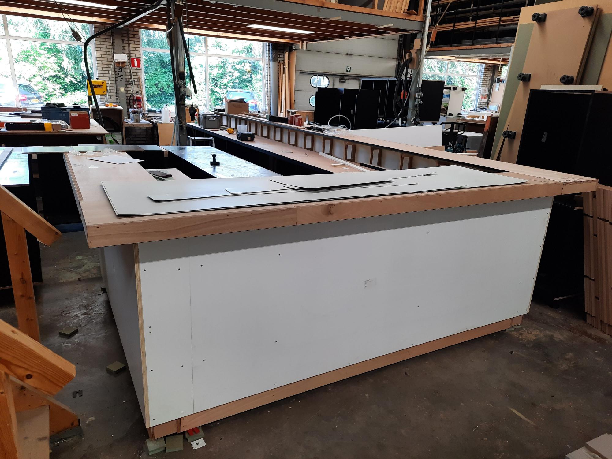 Wij hebben zowel voor de bar in het clubhuis als voor de bar in de Coffee Click Lounge, geadviseerd, uitgewerkt in tekening, geproduceerd en gemonteerd. Verder leverden wij twee koffiemeubels en tafelbladen. Verder heb ik vooral als klankbord van voorzitter Leon Annokkee gediend bij de keuze van losse meubels en of de keuzes passend in het interieur waren.