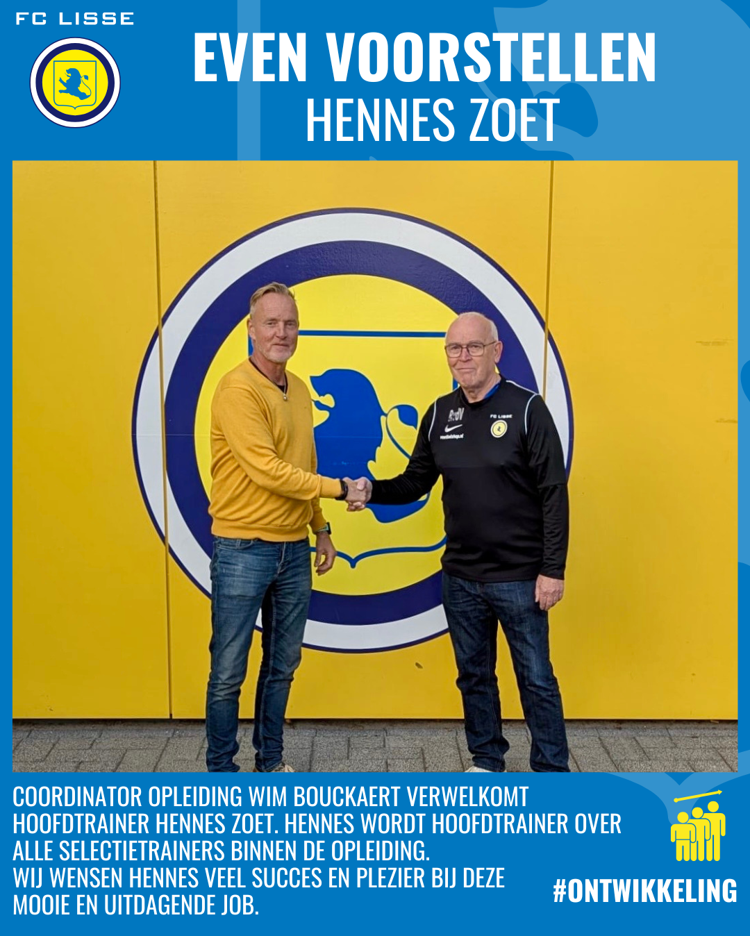 Hennes Zoet is onlangs verwelkomd door Coordinator Opleiding Wim Bouckaert als Hoofdtrainer over de selectietrainers binnen de opleiding van FC Lisse.