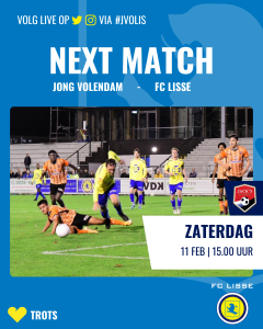 Voor Jong Volendam is het dan ook belangrijk wakker te blijven tegen FC Lisse zaterdag 11 februari vanaf drie uur. FC Lisse moet negentig en nog iets meer minuten bij de les blijven om niet verrast te worden door de grilligheid van beloftenteams. Zes wedstrijden op rij niet verloren dat smaakt naar meer. Dat na het zuur van de late 2-2 tegen Spakenburg weer het zoet volgt voor de FC in de vorm van een overwinning.